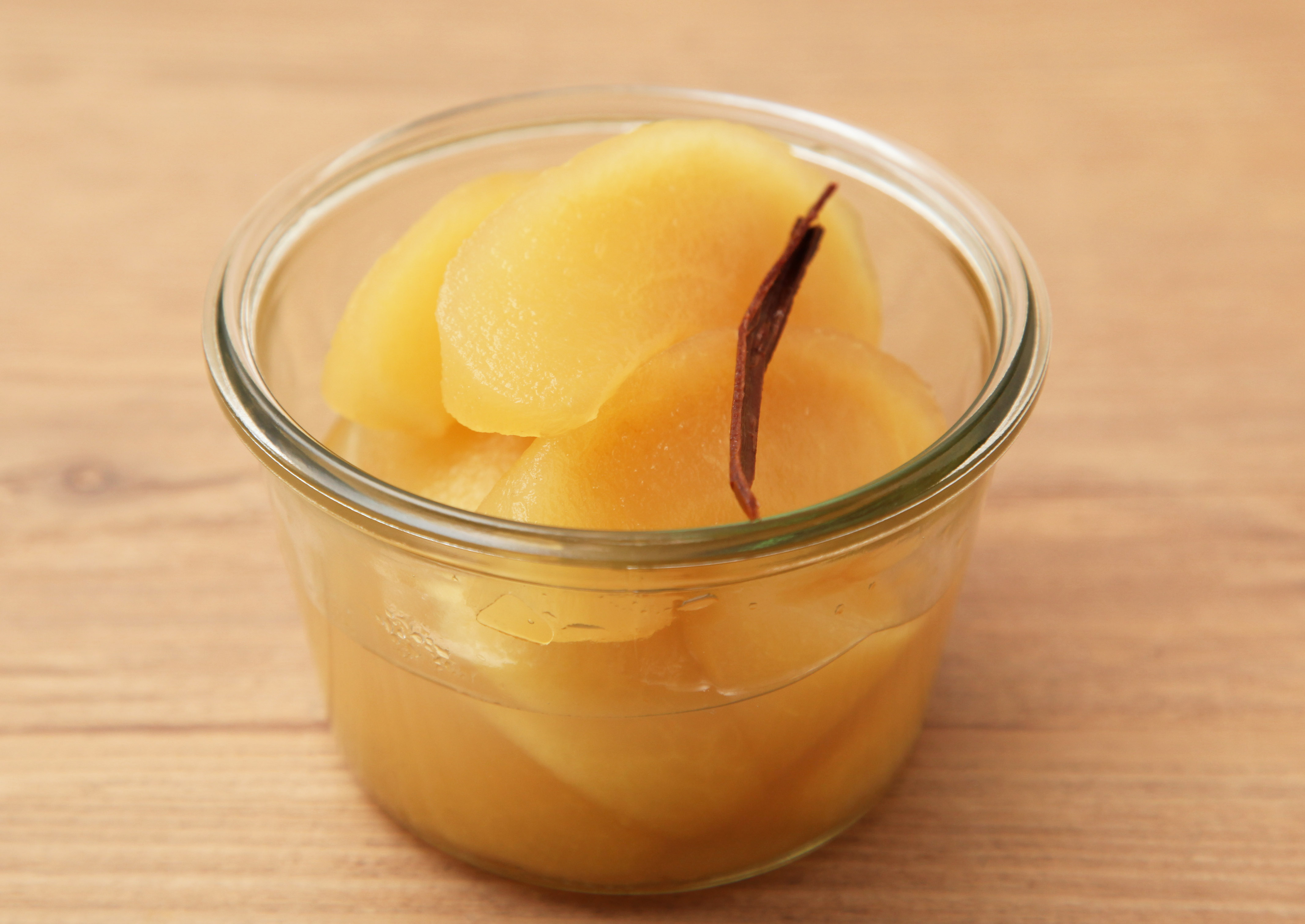 これから旬を迎えるりんごを使った、白ワインとシナモン香るシロップ煮。そのままはもちろん、ヨーグルトに添えたりパンケーキに合わせたりするのもおすすめです。
