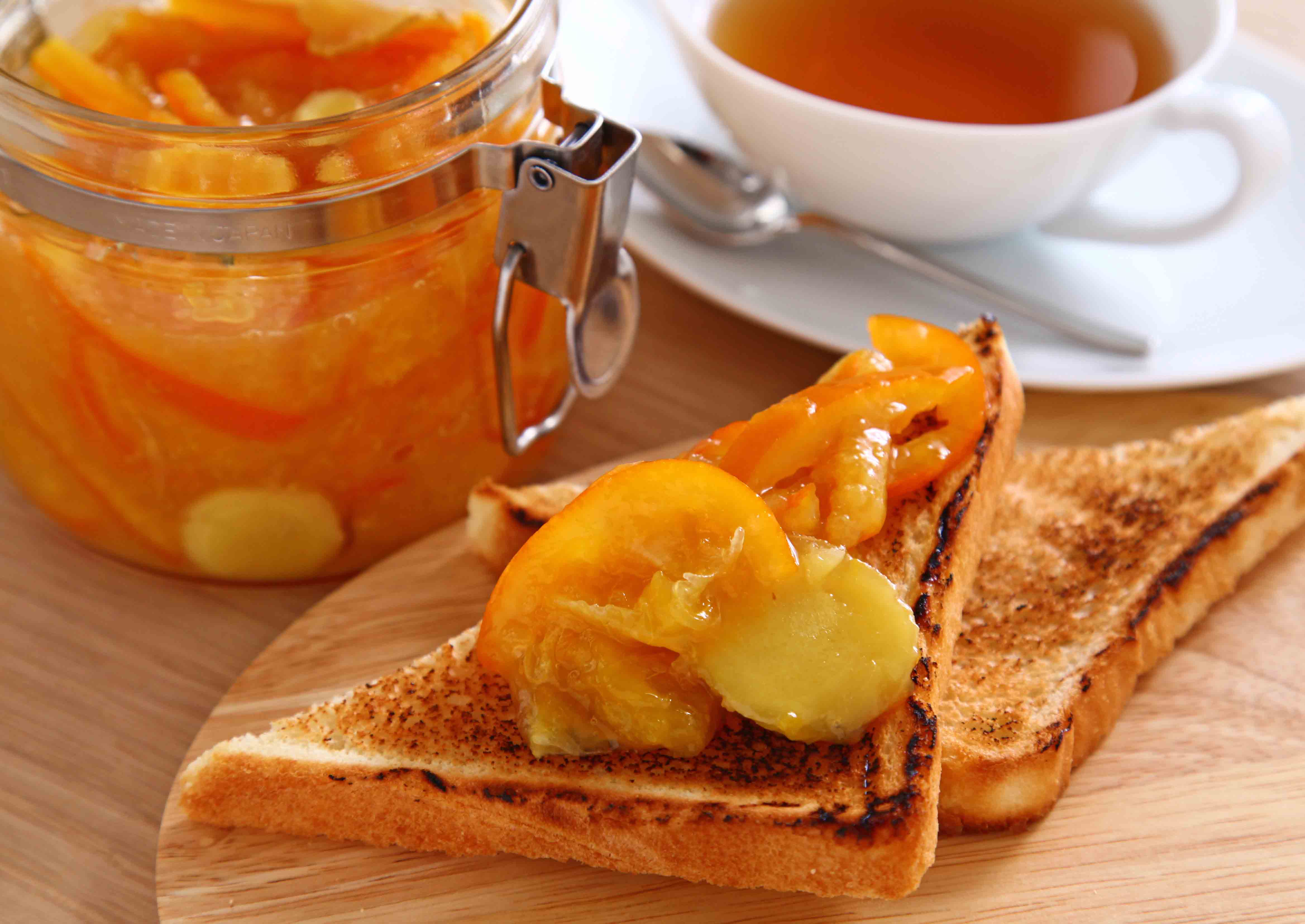 いよかんを皮ごと使ったジャムです。いよかんの皮の苦味としょうがの風味がよく合います。トーストはもちろん、ヨーグルトや紅茶などに入れてもおいしくいただけます。