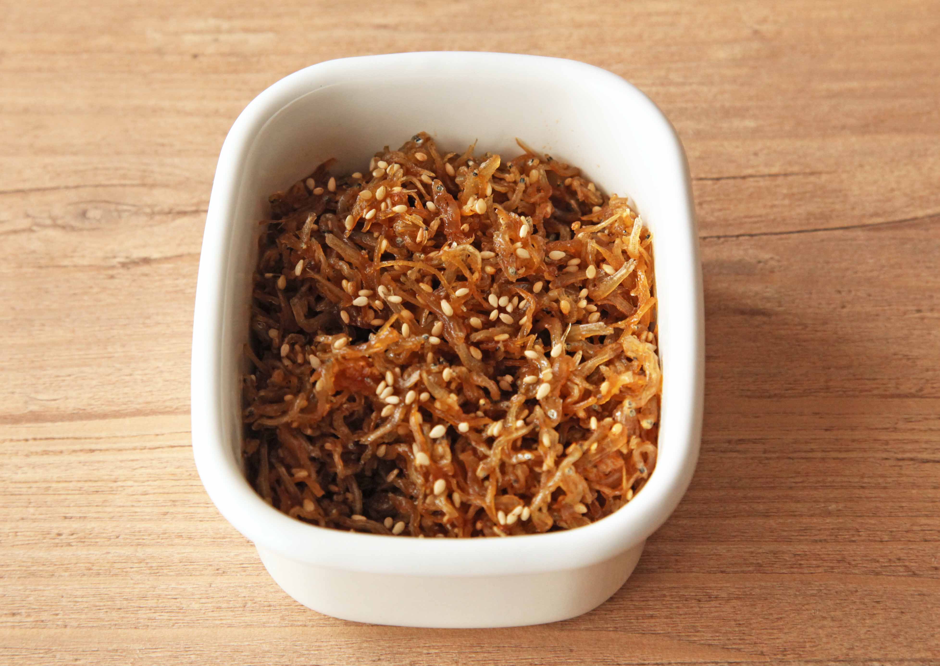 うま味たっぷりのじゃこと、キリッと味を引き締めるしょうがを甘辛く煮詰めて作る自家製の佃煮です。しっかりめの味つけで、ごはんはもちろんお酒にもよく合います。