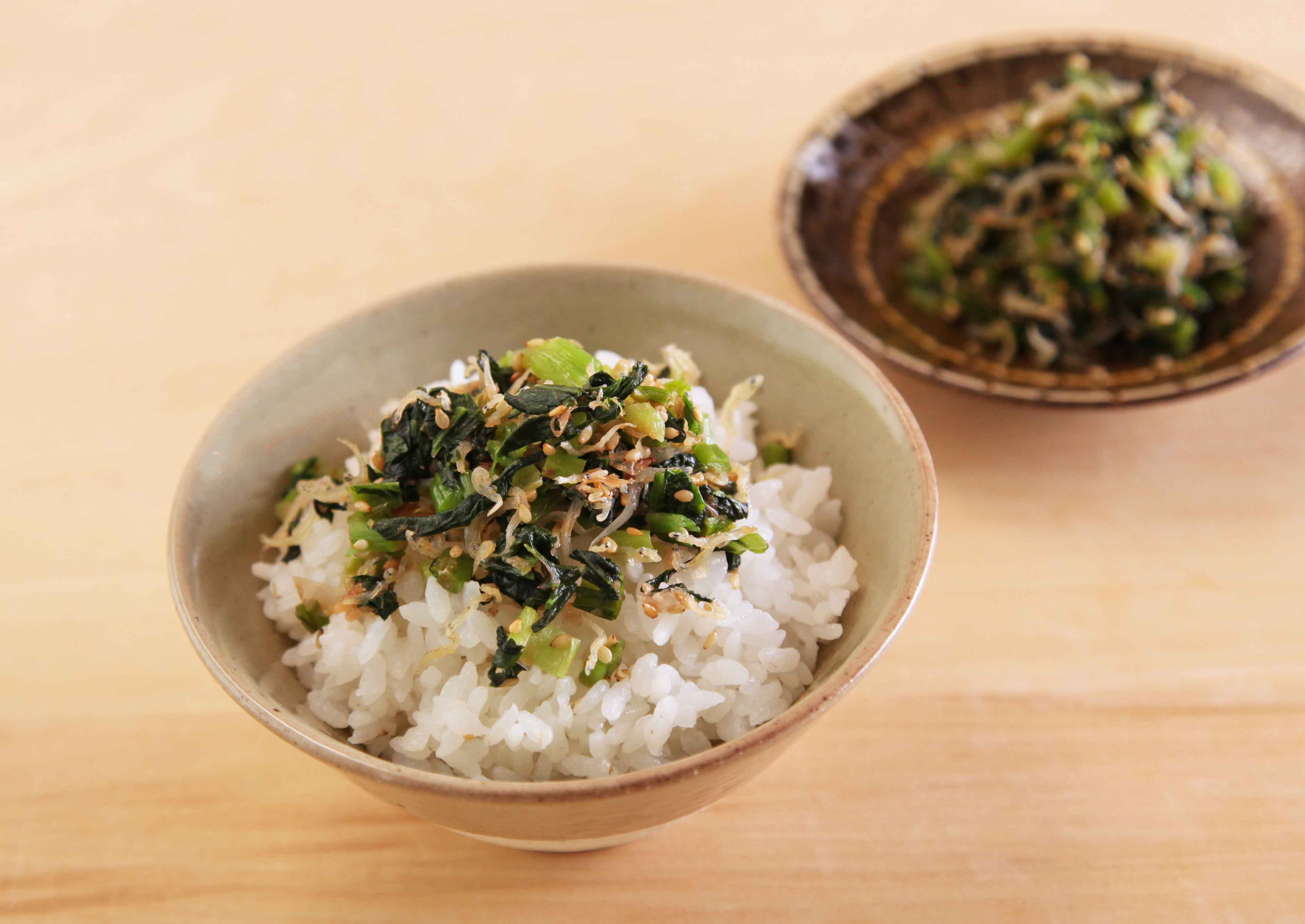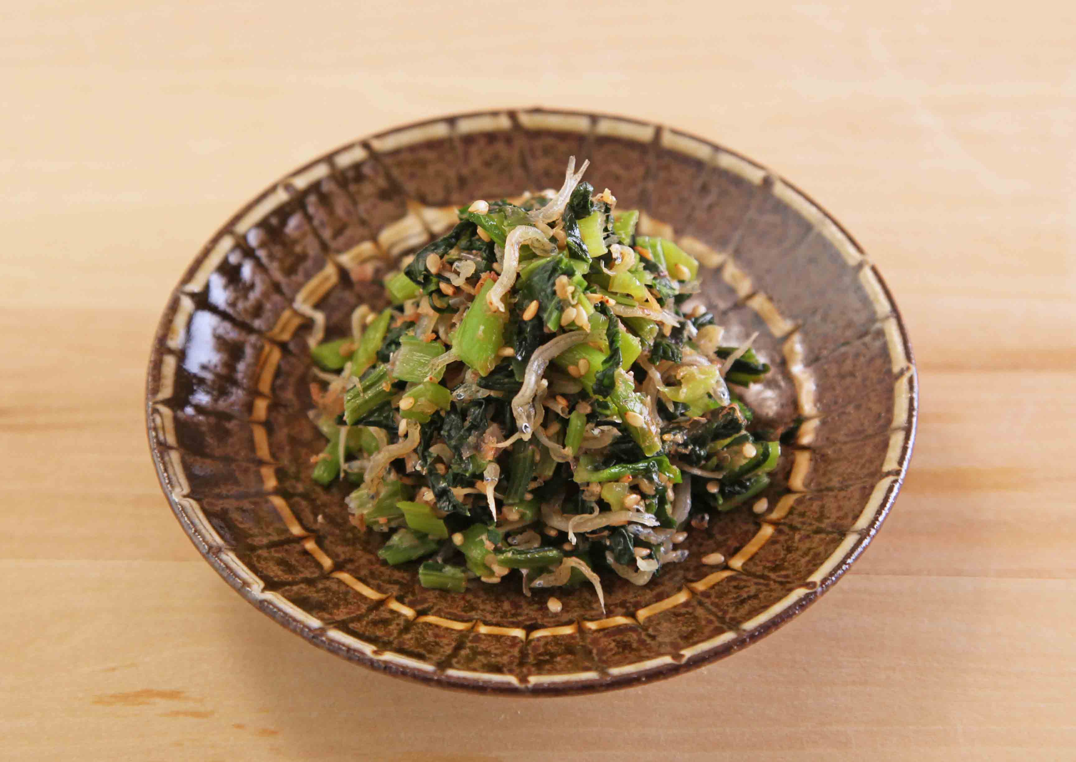 小松菜やじゃこには、カルシウムが多く含まれています。さらに、小松菜は歯や骨の成長に欠かせないビタミンK、じゃこにはカルシウムの吸収を助けるビタミンDが豊富なので一緒に食べると効果的です。乳アレルギーの方のカルシウム補給源としてもすすめです。