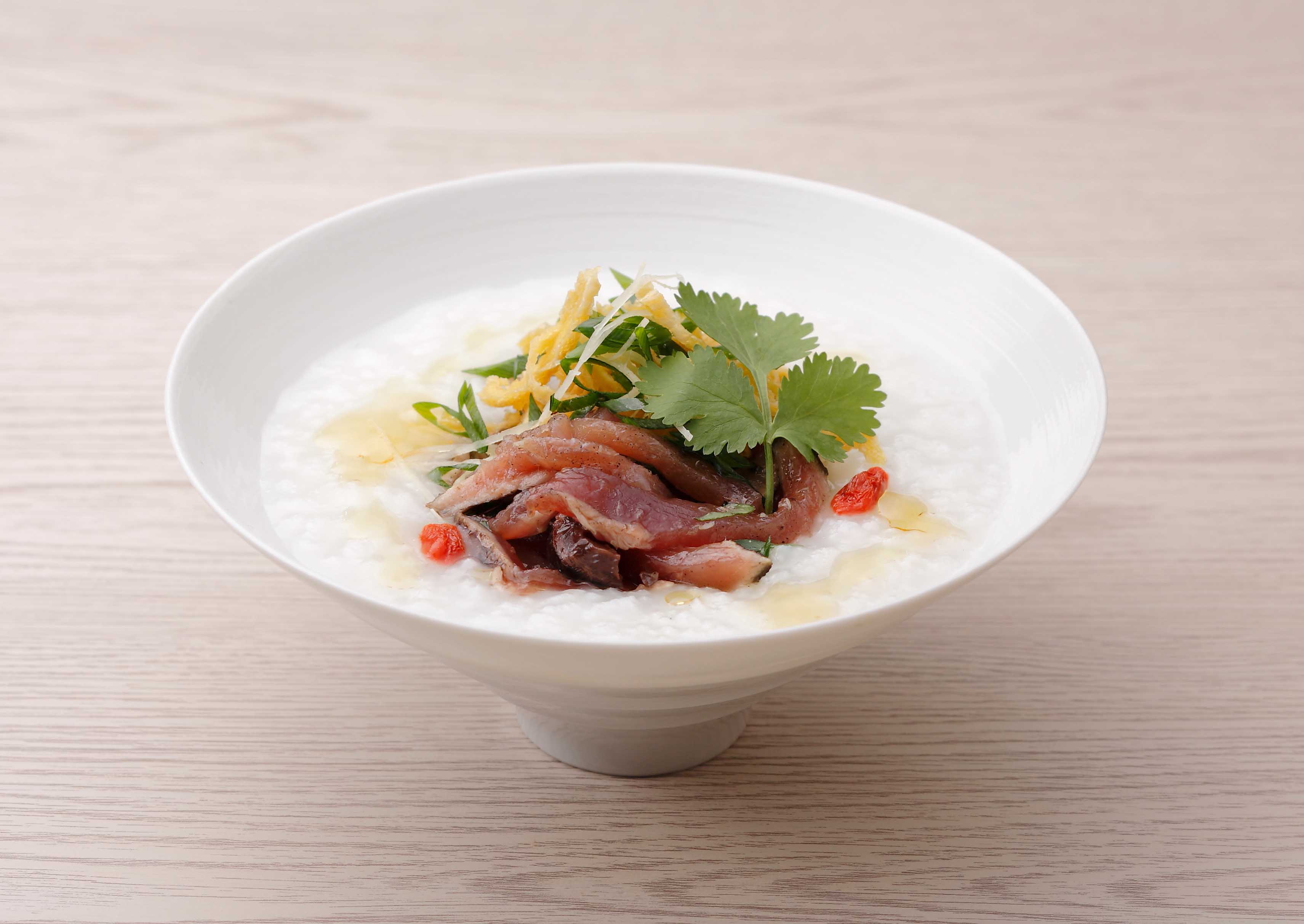 あっさりとしたお粥と風味豊かなかつおの相性がよい、いつもとひと味違う中華粥です。