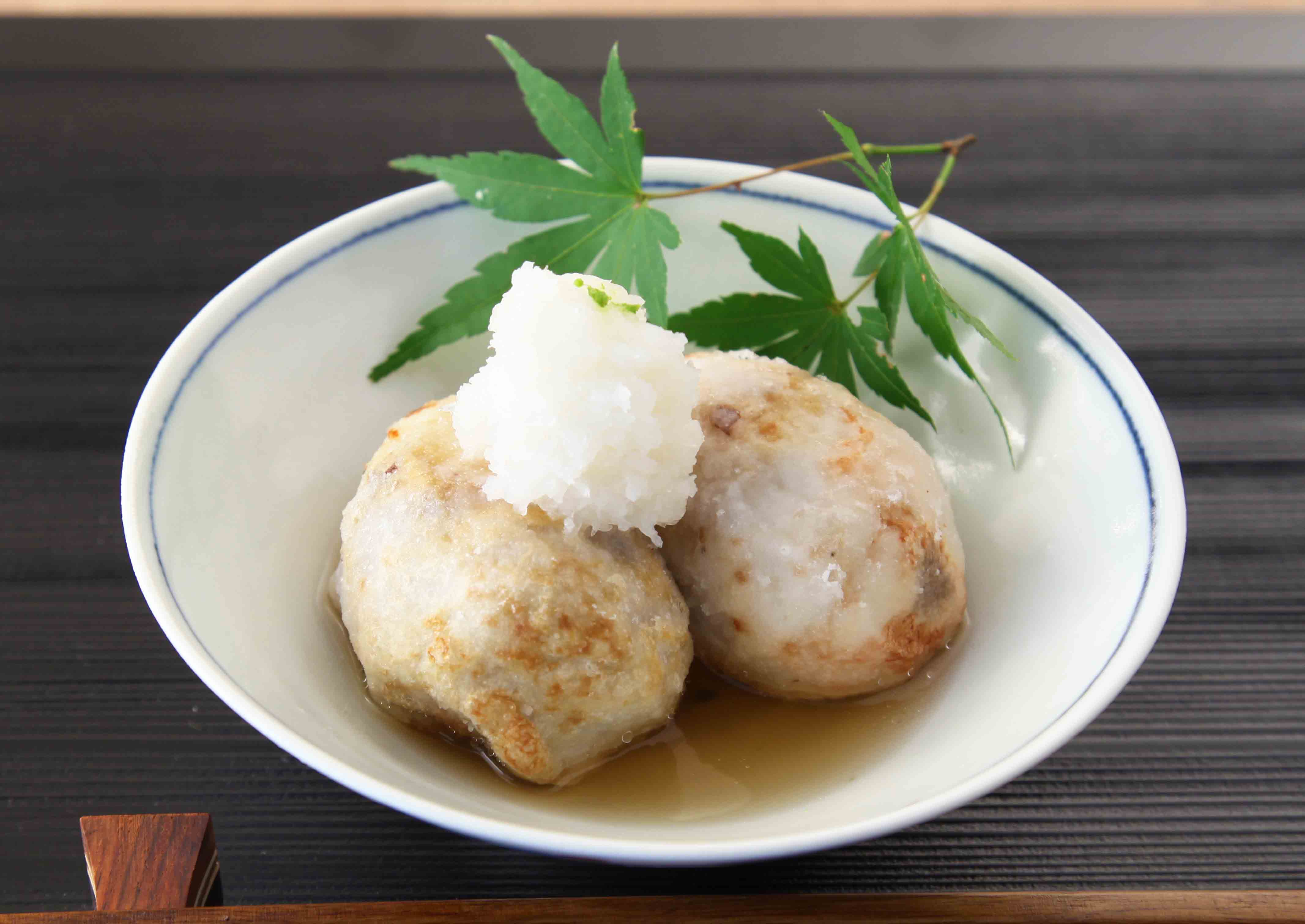 器に揚げたさといもを盛り付け、(4)を注ぐ。大根おろし・お好みでゆずの皮を添える。