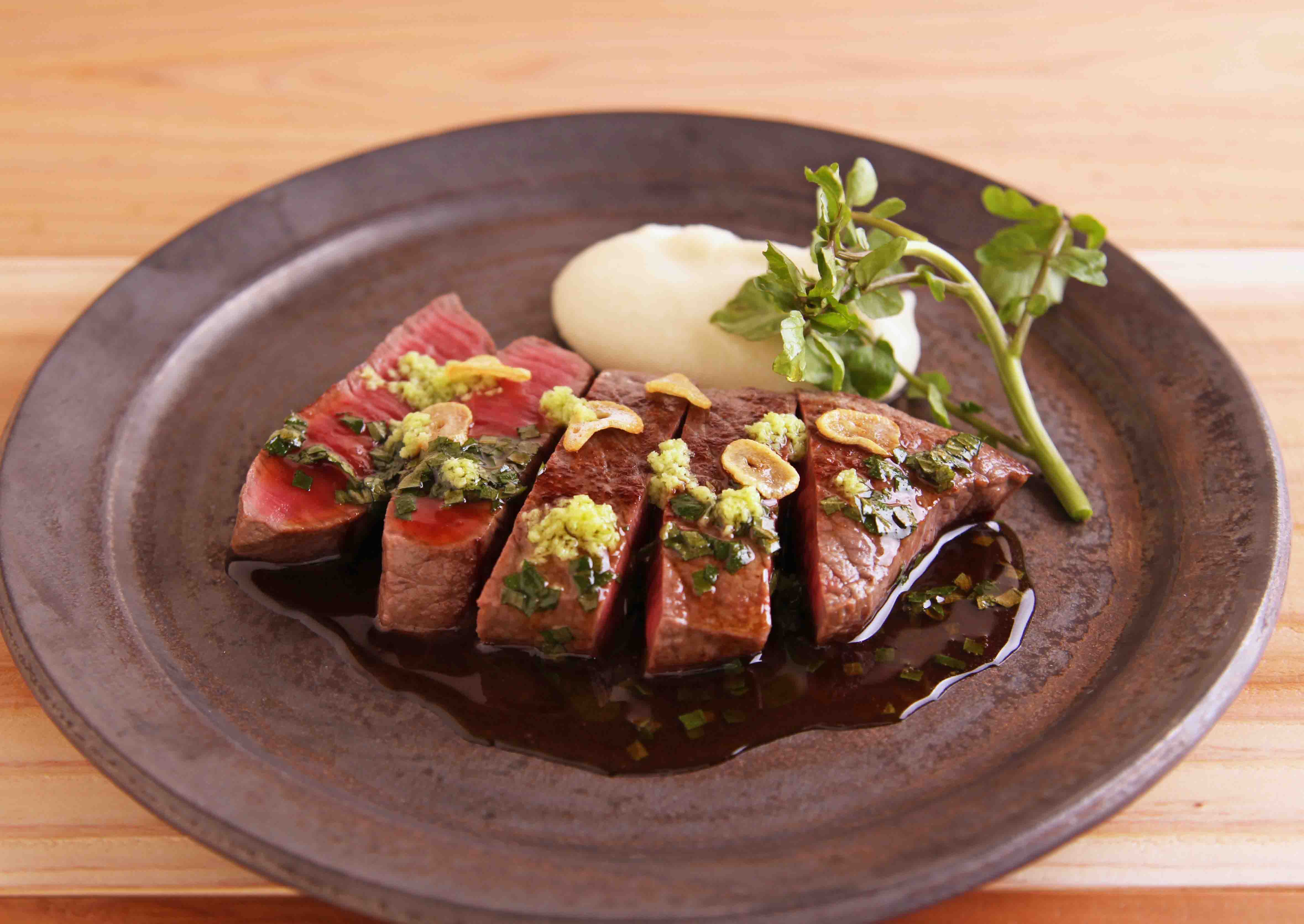 ジューシーに焼き上げた牛肉を青じそ香るさっぱりとした和風ソースでいただきます。