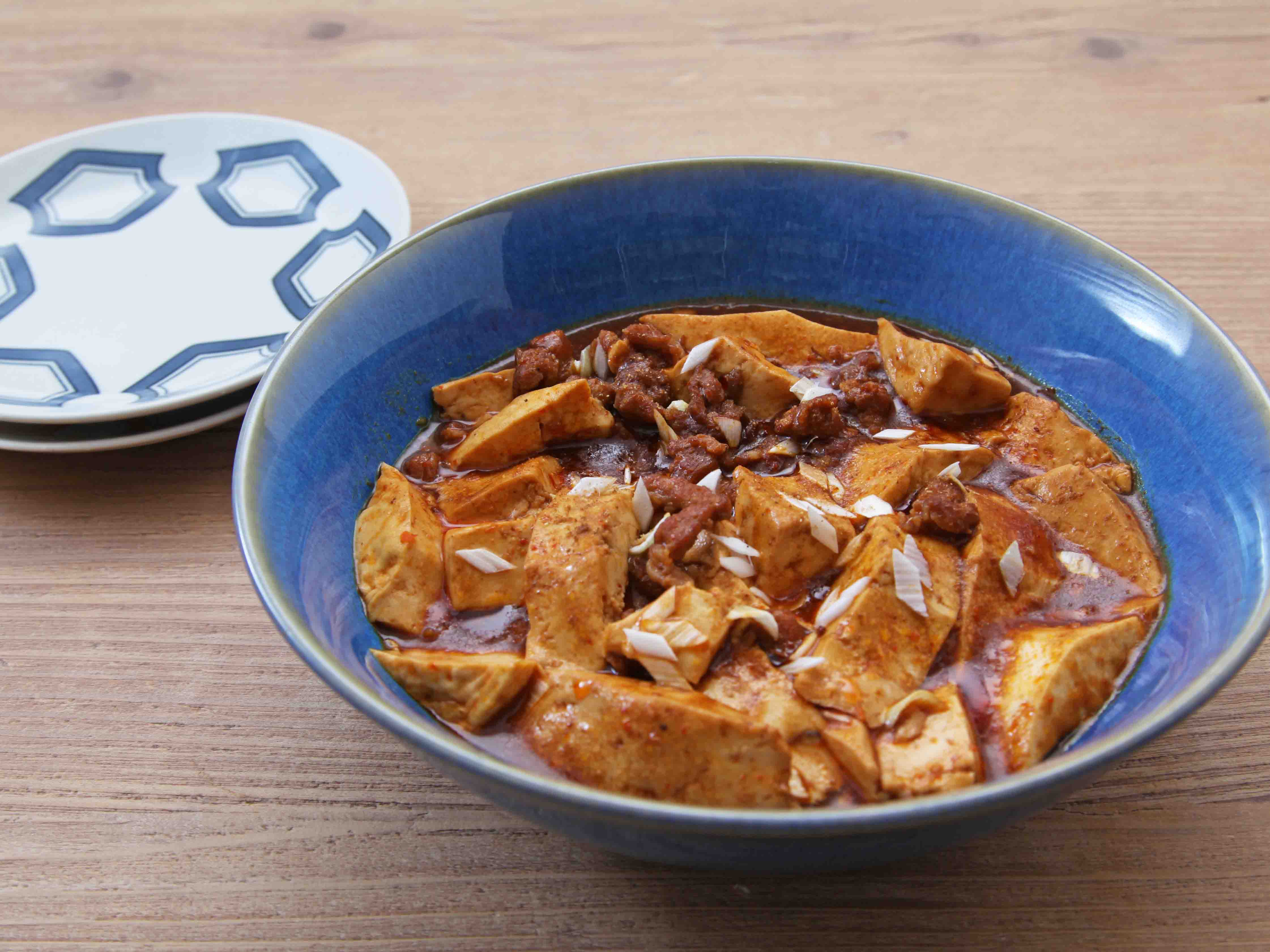 豆板醤の辛みと山椒のキリッとした香りが立ち上る、本格的な麻婆豆腐。豆腐を塩茹でするのがポイントです。