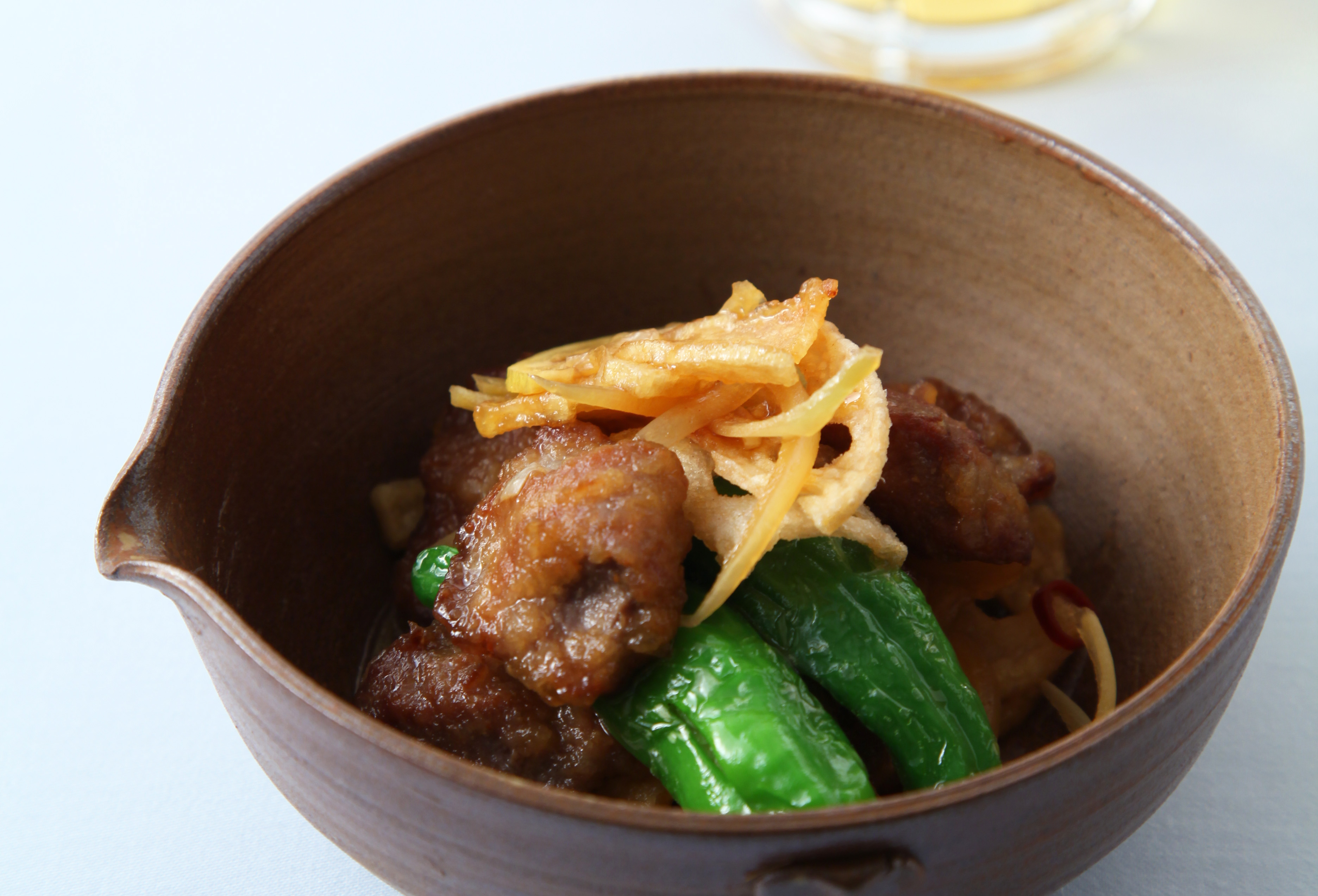 • 170℃の揚げ油でししとう・れんこんをサッと揚げる。温度を160℃に下げて砂肝を加え、火が通るまで2~3分揚げる。