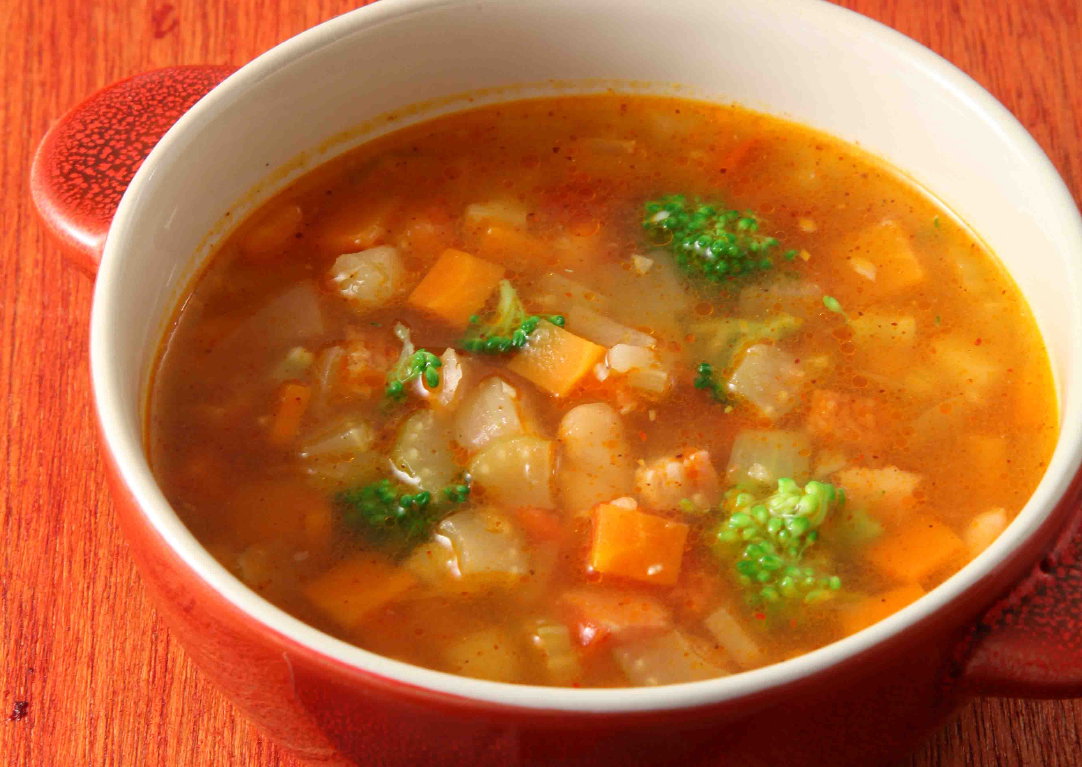 ピリッとスパイスのきいた、野菜がたっぷり入ったミネストローネです。