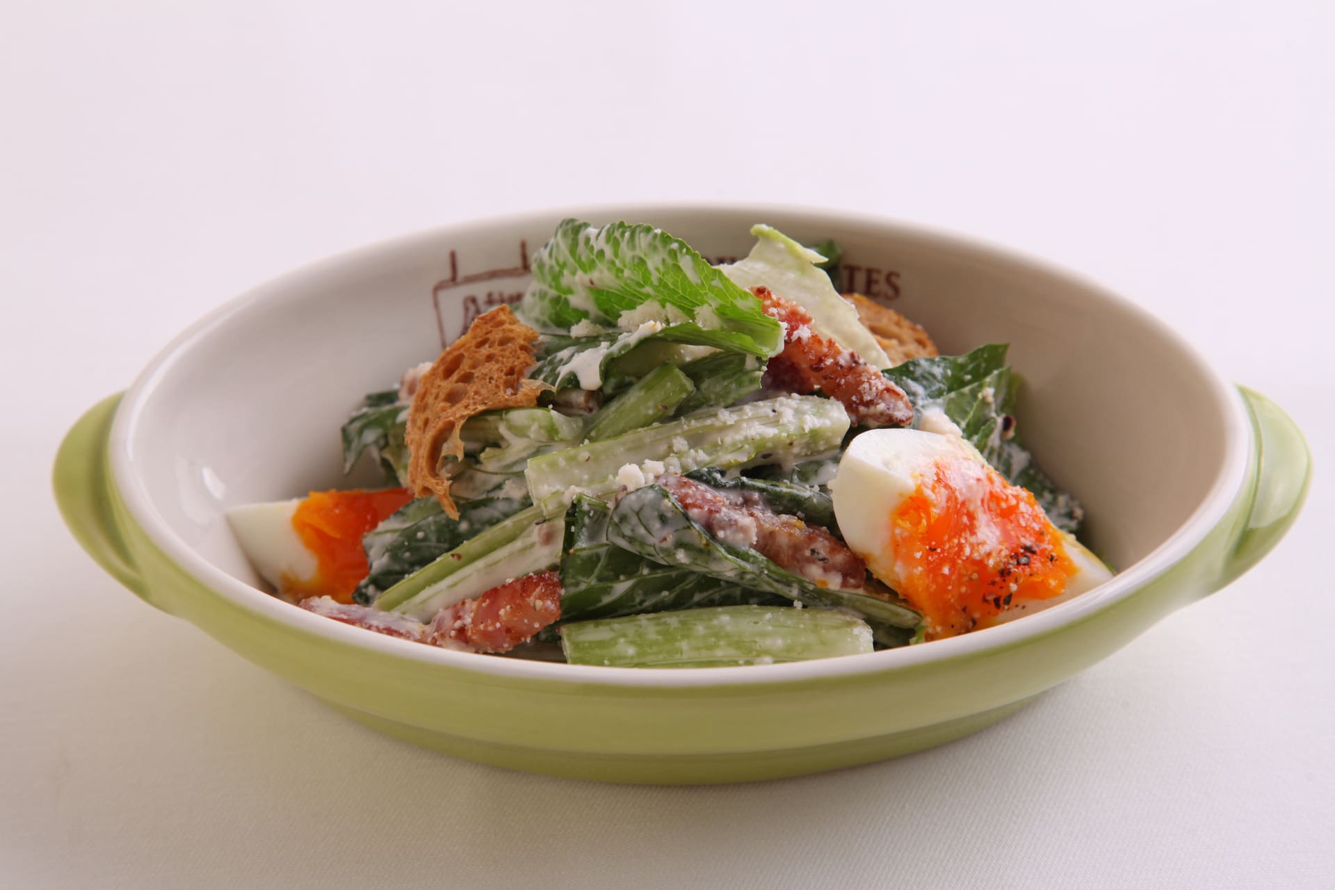 チーズの風味が効いたシーザードレッシングをたっぷり絡めてどうぞ。