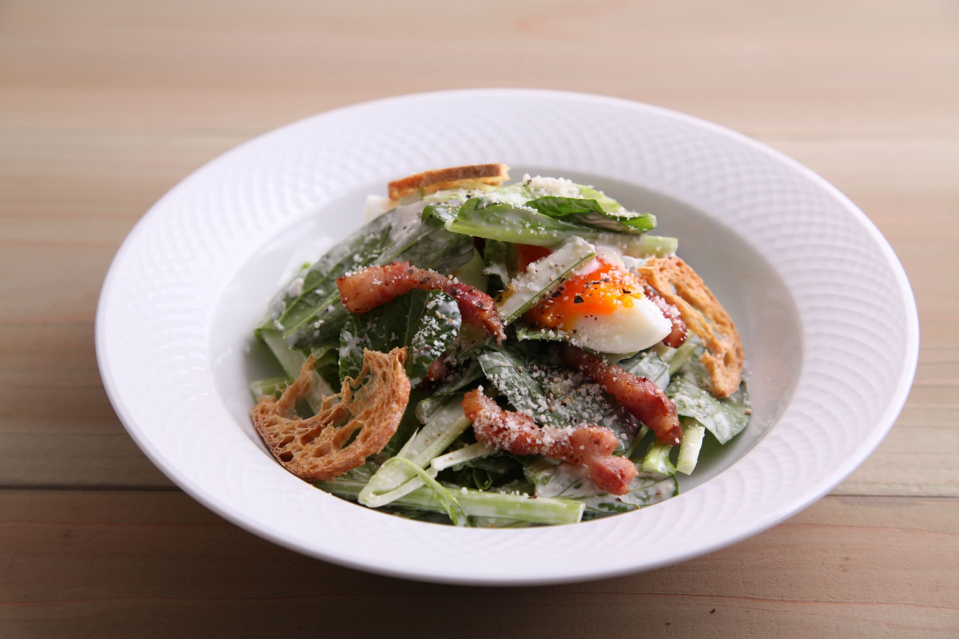 チーズの風味が効いたシーザードレッシングをたっぷり絡めてどうぞ。