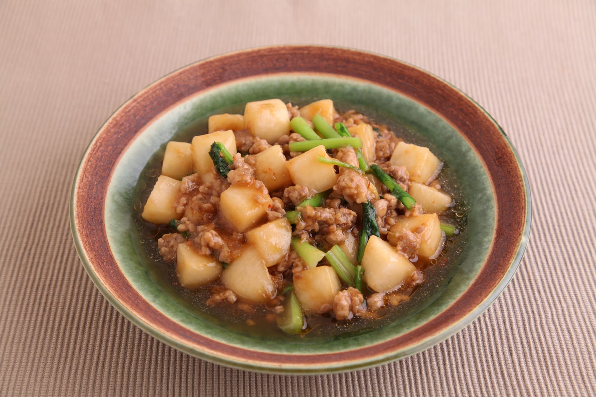 中華の定番の麻婆を今がおいしい「かぶ」を使って作りました
