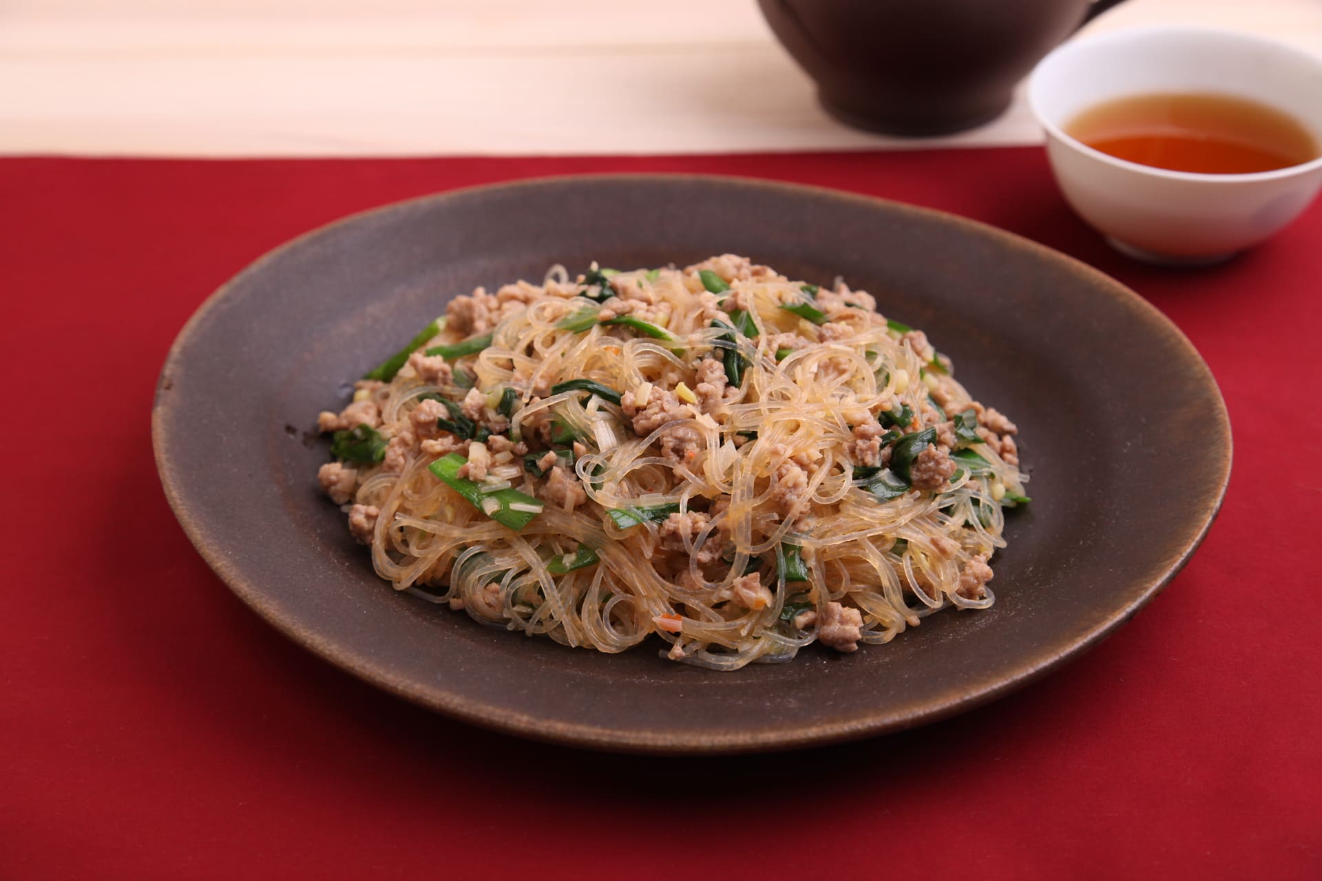 豚肉とみそのうま味たっぷりの煮汁を吸いこんだ春雨は、甘辛い味付けでご飯が進みます。