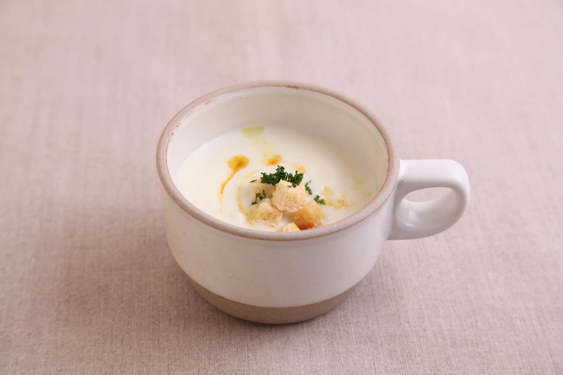 カリフラワーの優しい甘味が染み渡る、なめらかなで濃厚なスープです。
