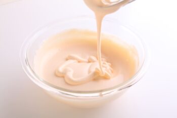※生地をすくい、落ちた生地で文字がかけるくらいまでしっかりと泡立ててください。
